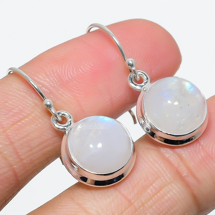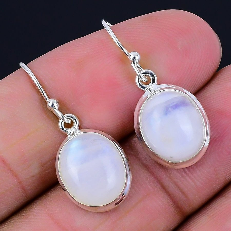 Rainbow Moonstone Gemstone 925 Silver Trendy Dangling Mother Earrings Jewelry
