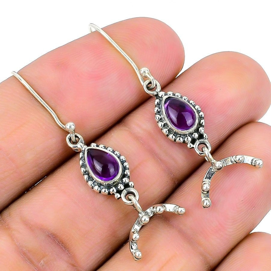 Crown Chakra Sage Amethyst Gemstone Solid Silver Dangle Anniversary New Earrings