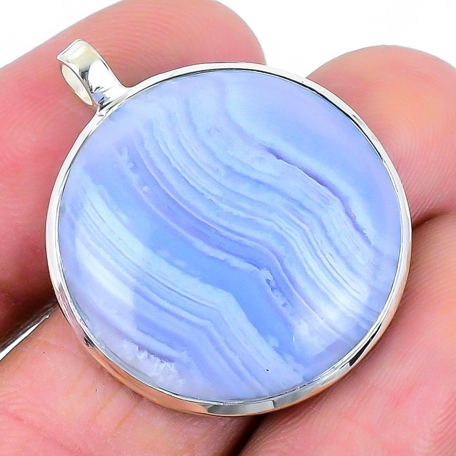 Natural Blue Lace Agate Anniversary Sister Pendant Jewelry Solid Sterling Silver