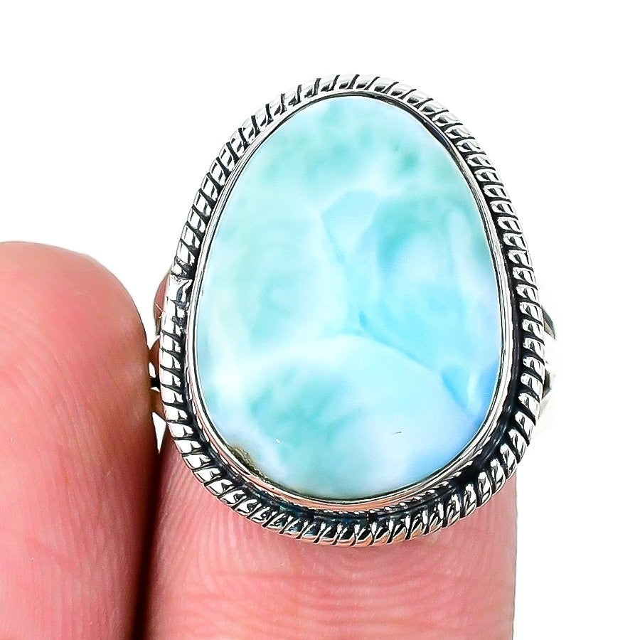 Republic Larimar Stone Sterling Silver Statement Wedding New Ring Jewelry Size 8