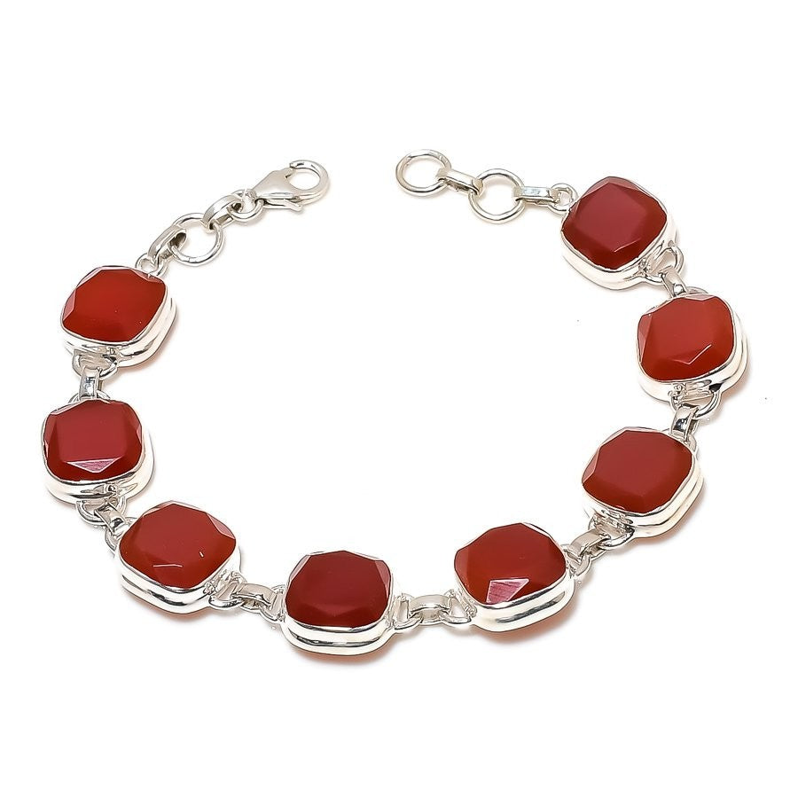 Natural Red Carnelian Chain Sister Ethnic Bracelet Jewelry Solid Sterling Silver