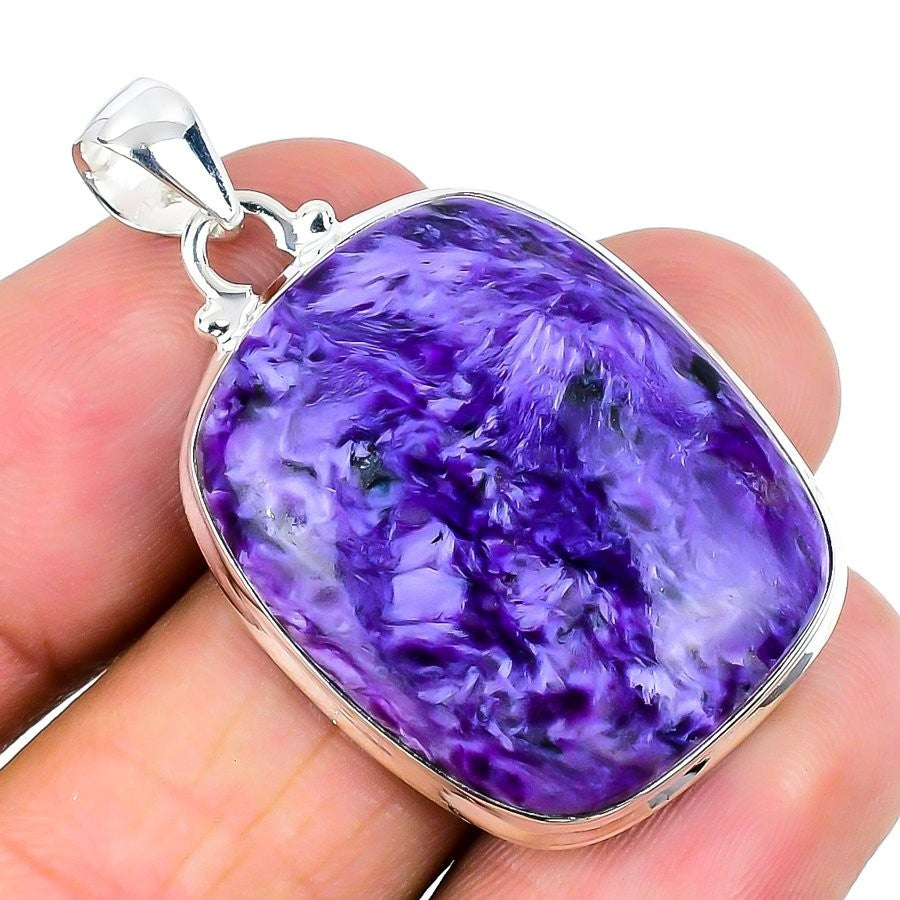 Natural Russian Charoite Solid Sterling Silver Daughter Gift New Pendant Jewelry