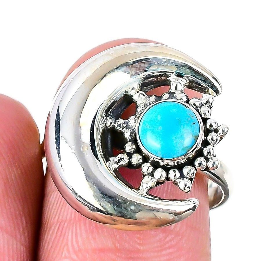 Sleeping Turquoise Gemstone 925Ā SolidĀ Silver Statement Sister Boho Ring Jewelry