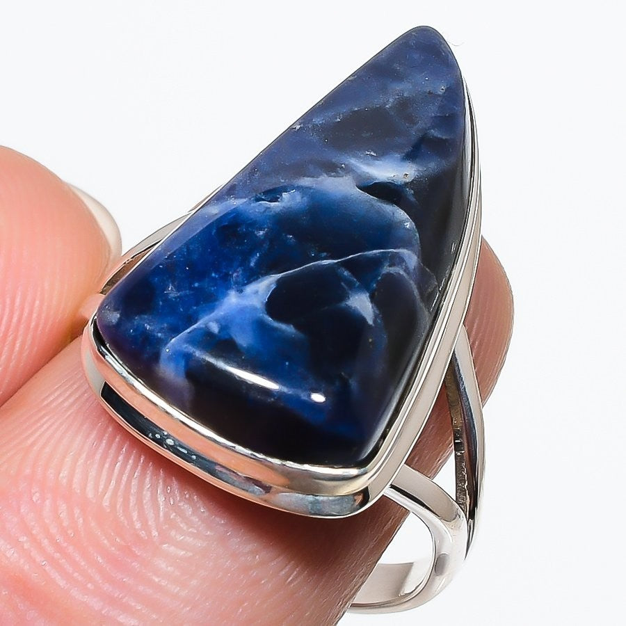 Sodalite Gemstone 925 Sterling Silver Boho Cluster Third Eye Chakra Ring Size 8
