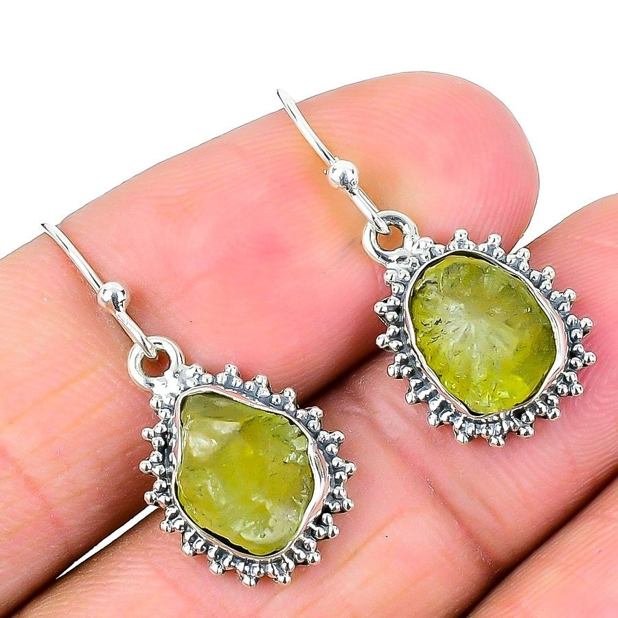 Heart Chakra Peridot Stone 925 Sterling Silver Handcrafted Drop Artisan Earrings