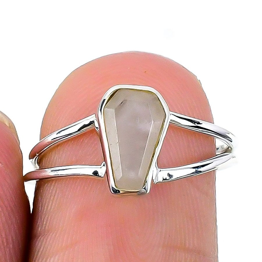 Rose Quartz Gemstone Statement Boho Ring Jewelry Size 6.5 Solid Sterling Silver