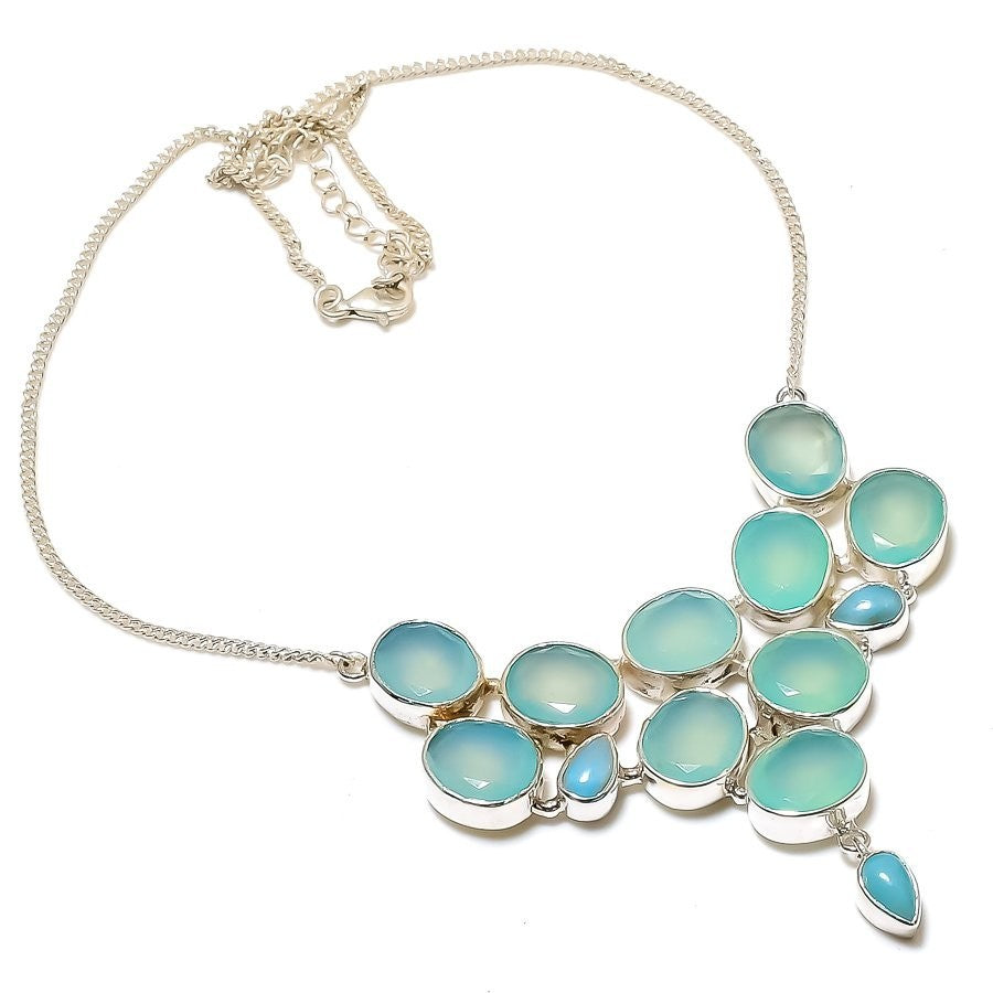 Natural Green Chalcedony 925Ā SolidĀ Silver Anniversary Chain Birthday Necklace