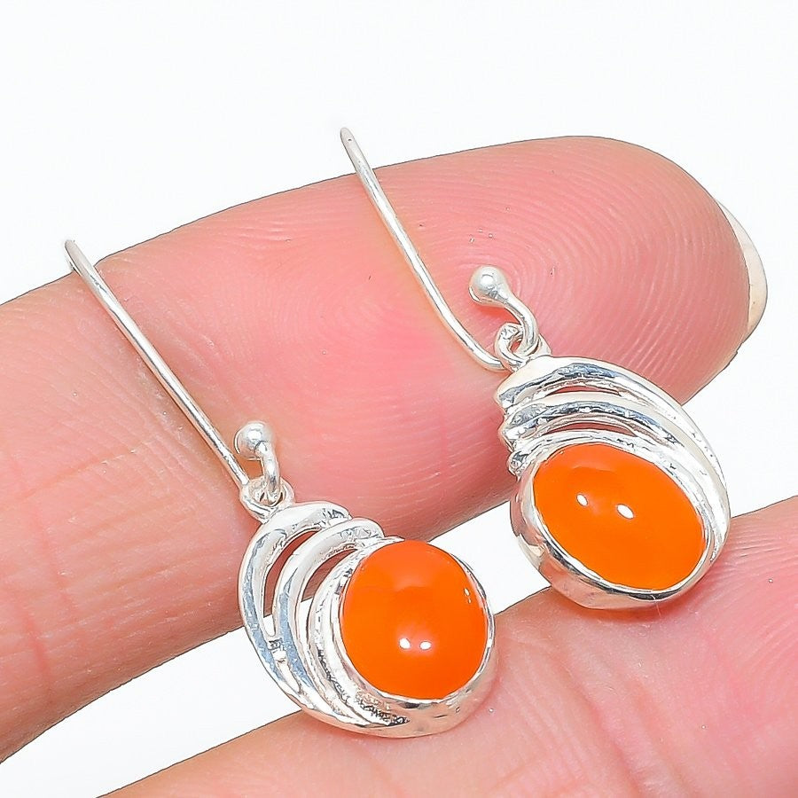 Orange Carnelian Gemstone 925Ā SolidĀ Silver Drop Dangle Handmade Earrings Jewelry