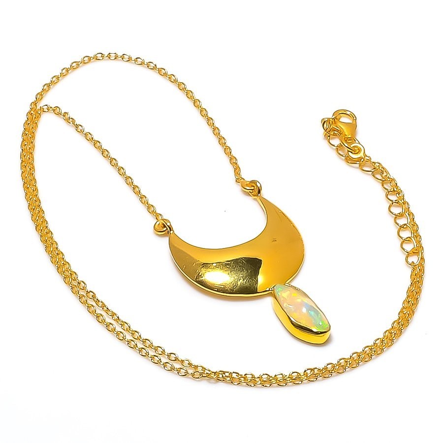 Ethiopian Opal Gemstone 925 Silver Wedding Trendy Chain Artisan Necklace Jewelry