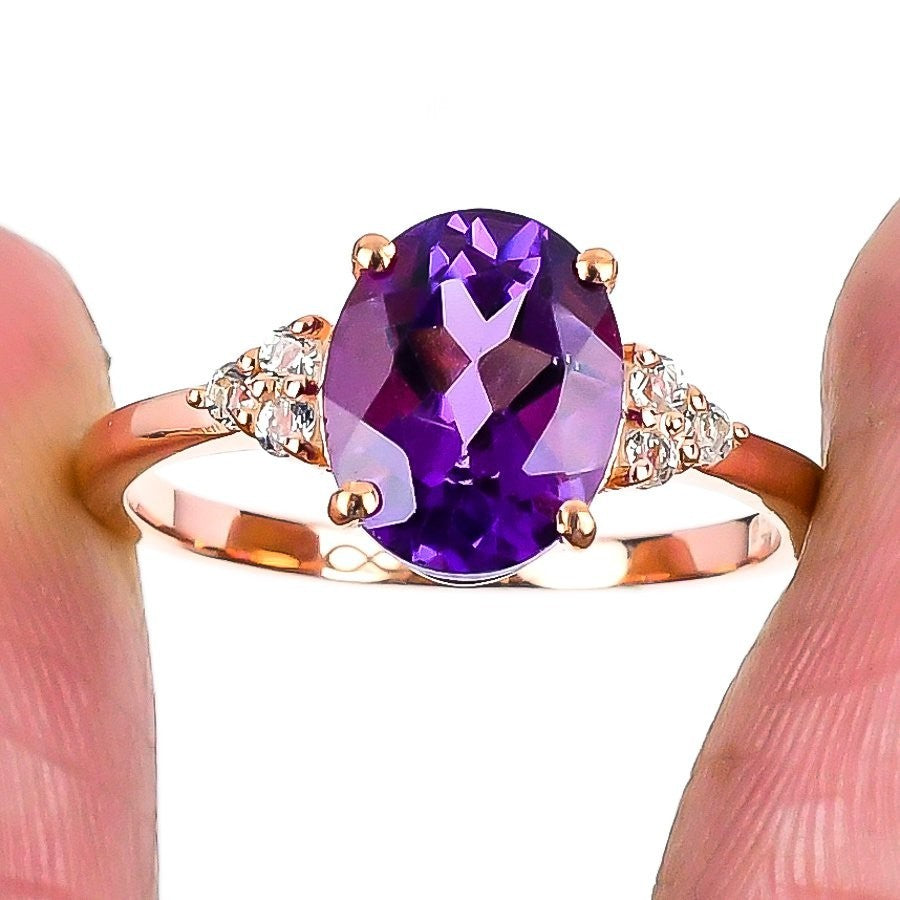 February Pink Amethyst Gemstone 925 Silver Wife Statement Anniversary Ring US 8