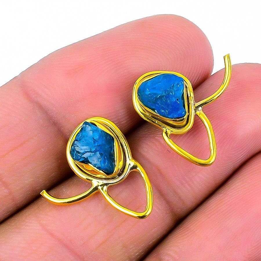 Neon Blue Apatite Stone Solid Sterling Silver Handmade Sister Pendant Jewelry