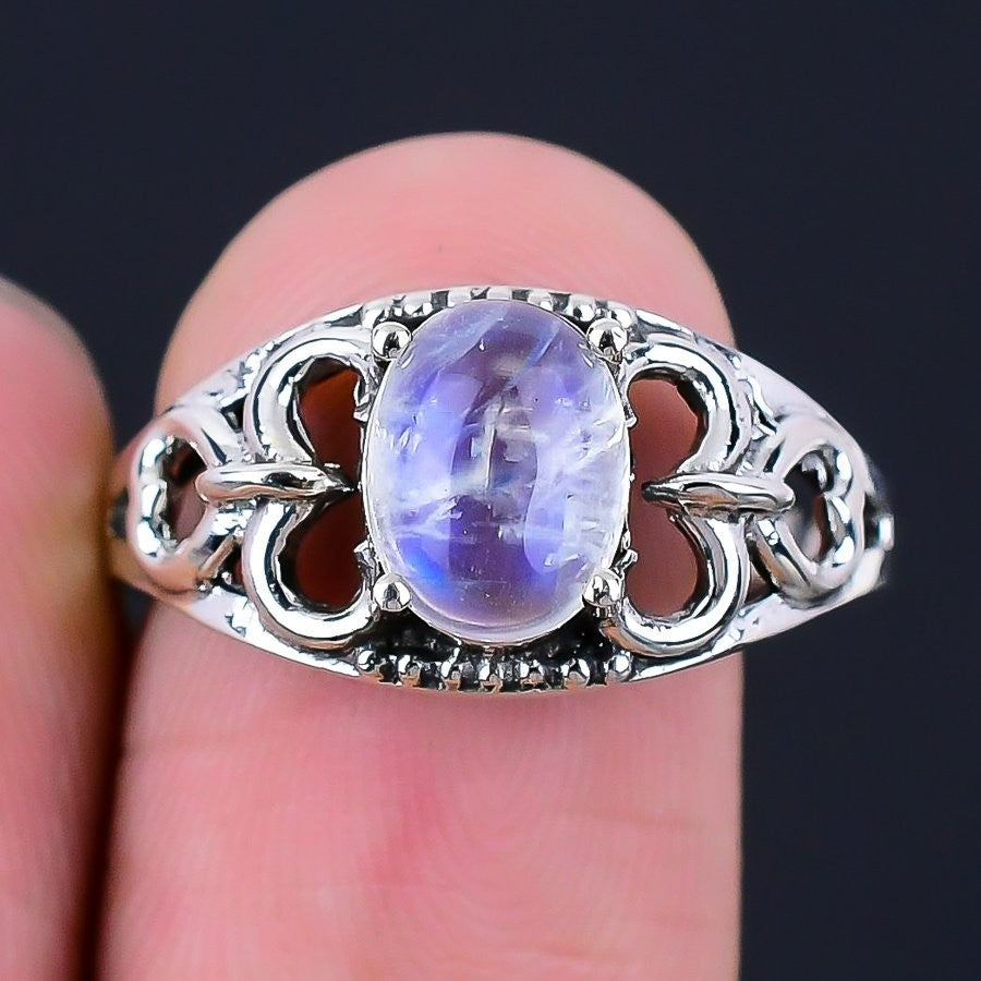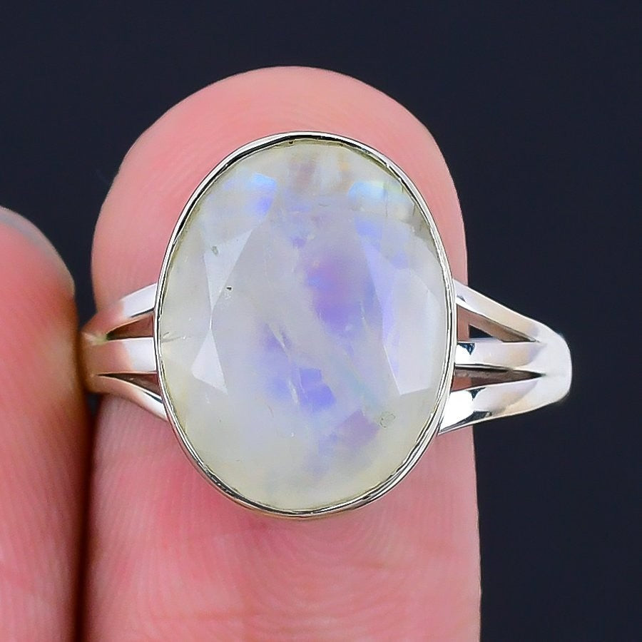 Rainbow Moonstone Stone 925 Sterling Silver Mother Statement Ring Jewelry US 8.5