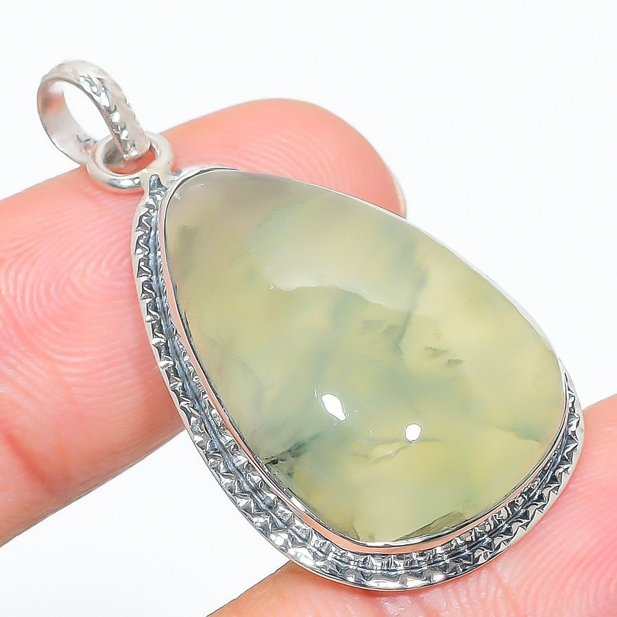 Natural Prehnite Solid Sterling Silver Daughter Gift Handmade Ethnic New Pendant