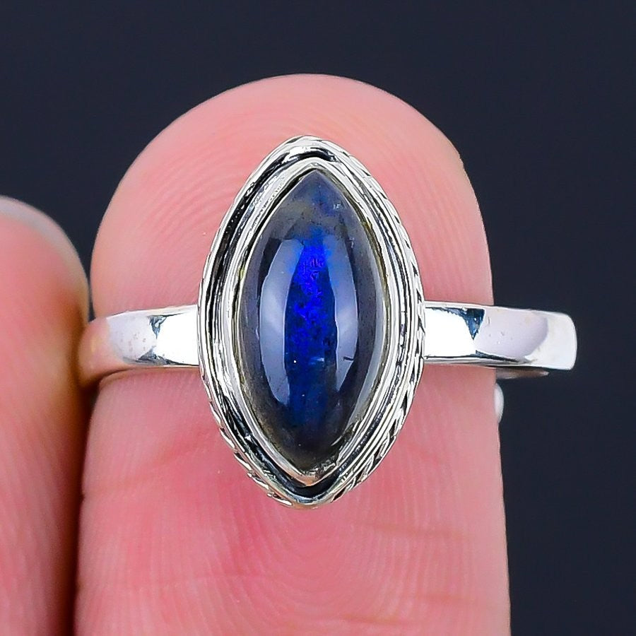 Natural Labradorite Statement Third Eye Chakra Ring Jewelry Solid Silver US 9