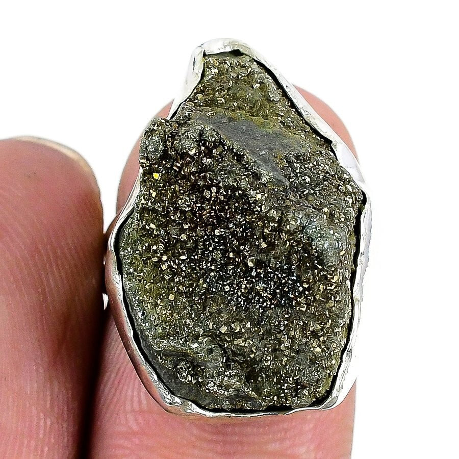 Natural Pyrite Druzy Solid Sterling Silver Wife Statement Ring Jewelry Size 8.5