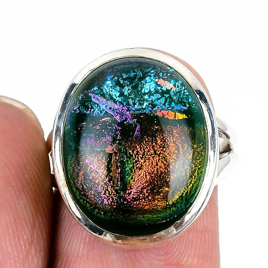 Mexican Dico Glass Gemstone 925 Silver Bezel Statement Mother Ethnic Ring US 6.5