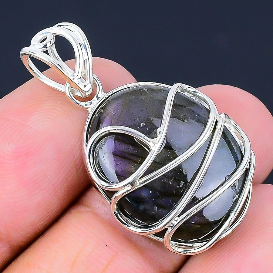 Third Eye Chakra Natural Labradorite 925 Silver Boho Birthday Pendant Jewelry