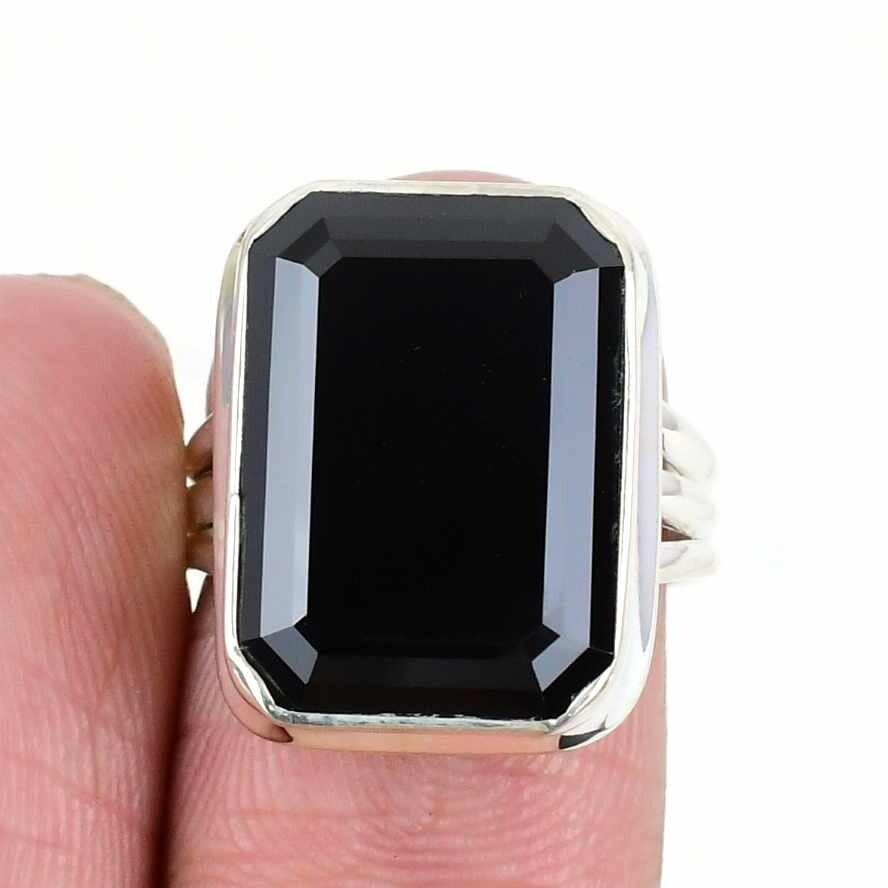 Black Onyx Stone Solid Sterling Silver Statement Anniversary Wedding Ring US 8.5