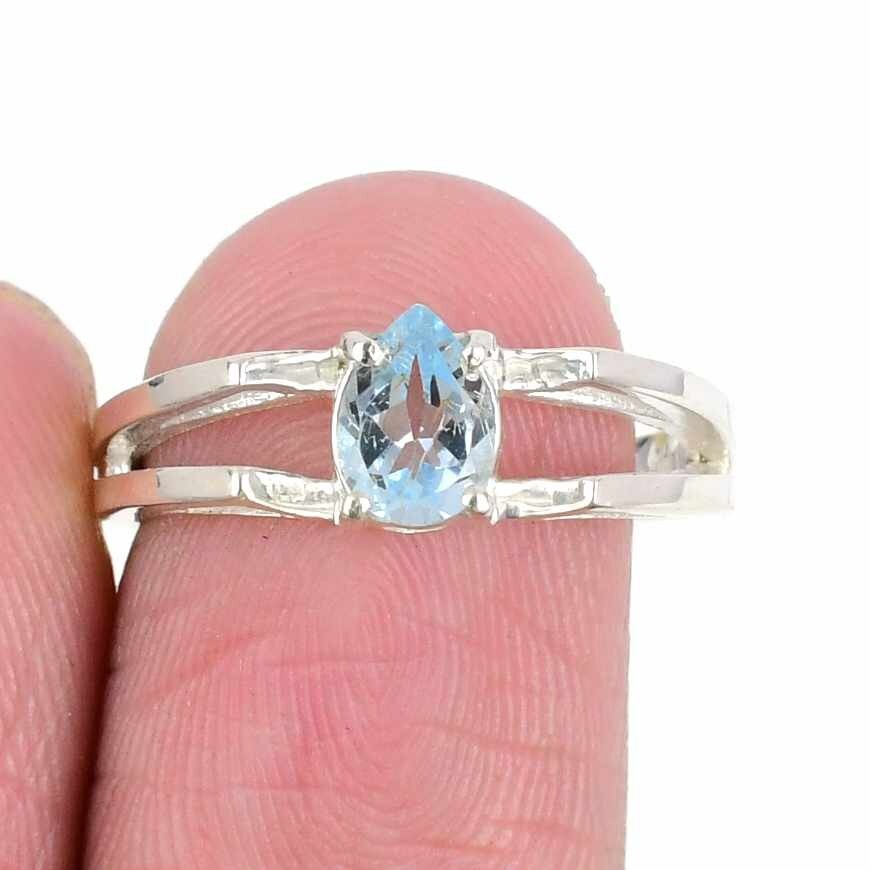 Swiss Blue topaz Gemstone 925 Silver Black Friday Cluster Ring Jewelry Size 7.5