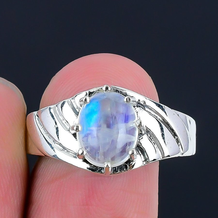 Crown Chakra Moonstone Stone Solid Sterling Silver Mother Statement Ring US 9