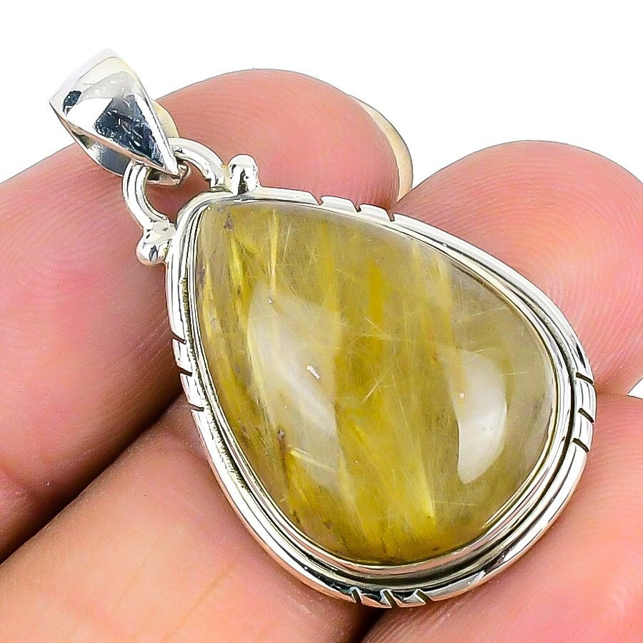 Golden Rutile Gemstone Handcrafted Daughter Trendy Pendant Solid Sterling Silver