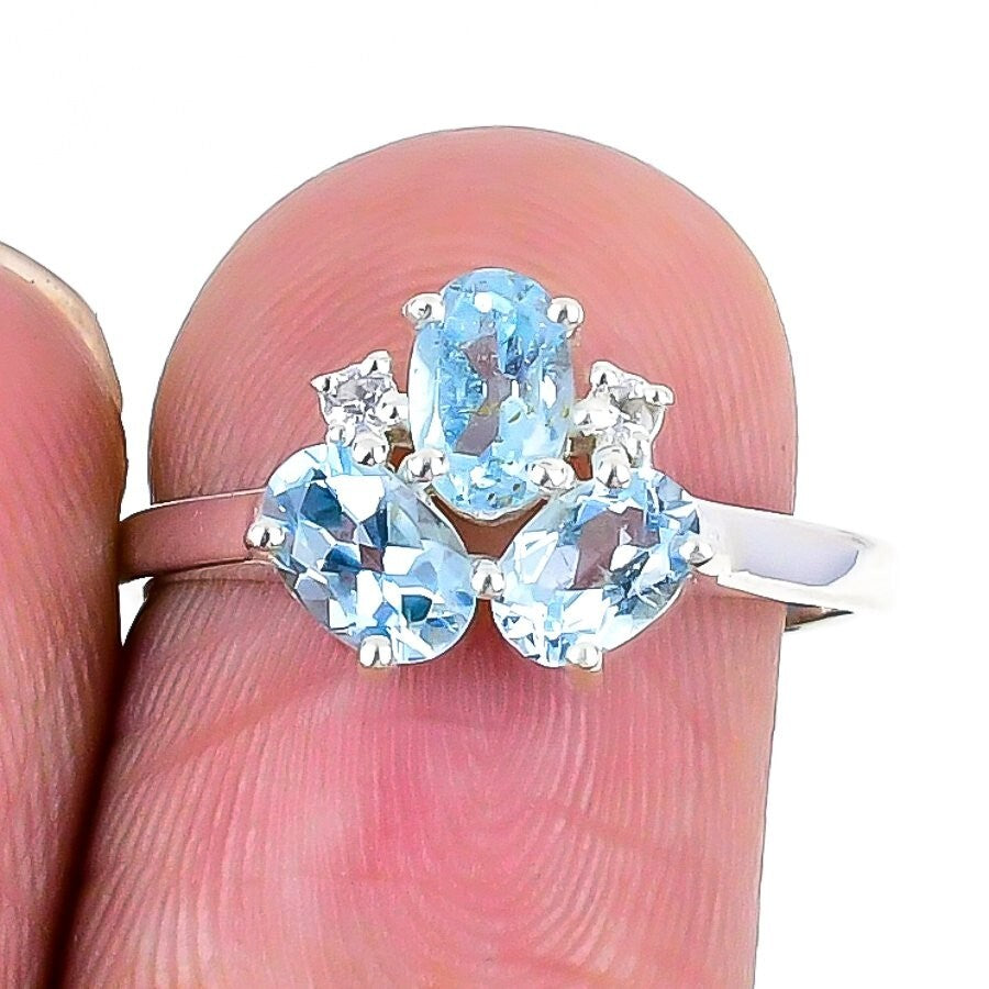 Natural Swiss Blue Topaz 925 Silver Statement Sister Boho Ring Jewelry Size 7.5