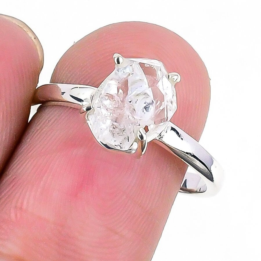 Herkimer Diamond Gemstone Solid Sterling Silver Cluster Wife Ring Jewelry Size 9