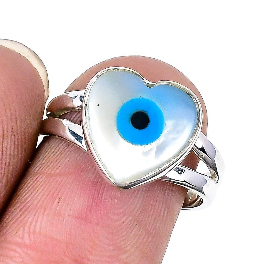 White Evil Eye Stone Solid Silver Birthday Statement Engagement New Ring Jewelry