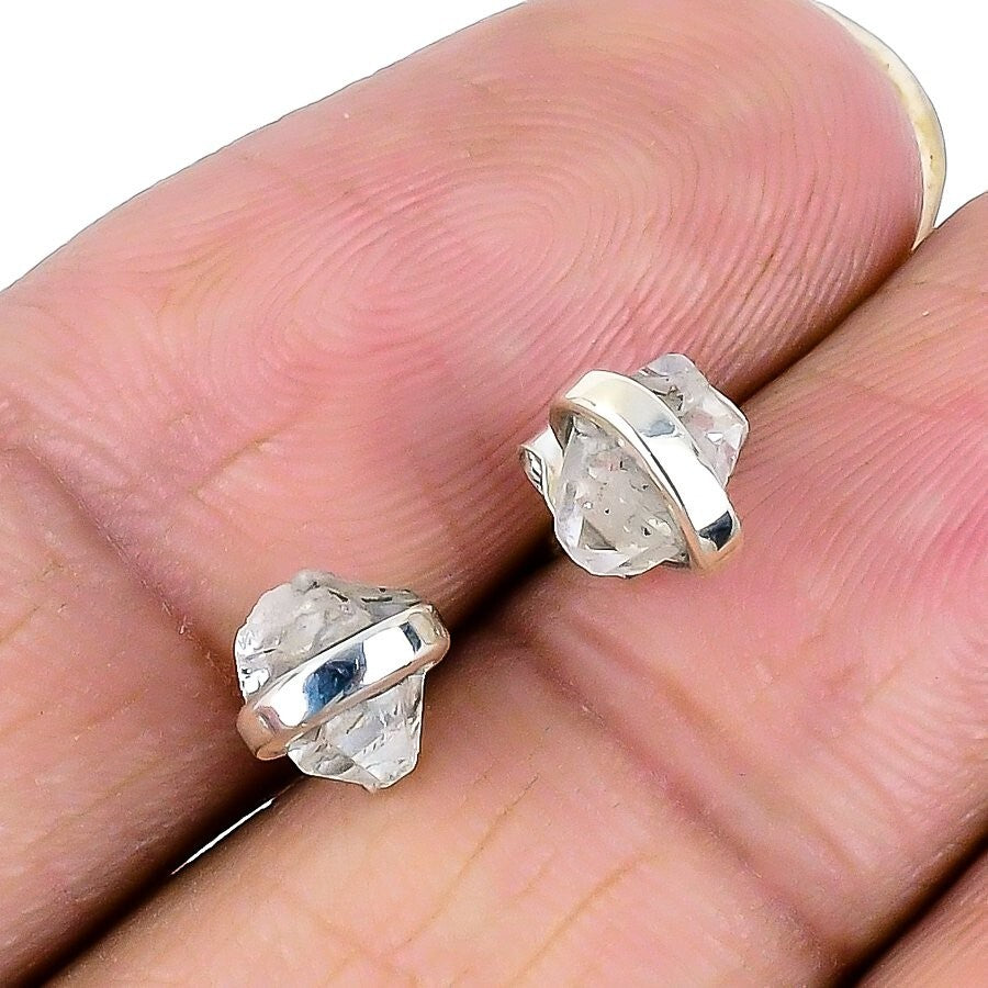 Memorial Day Deal Herkimer Diamond Stone Solid Silver Stud Post Boho Earrings