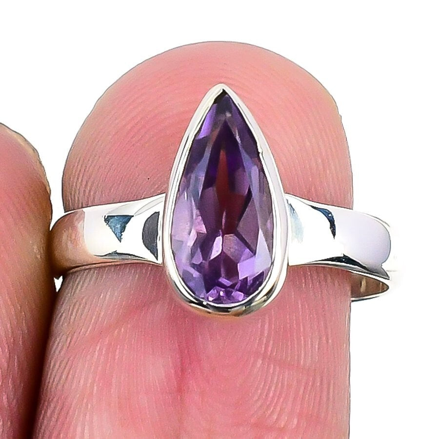 Crown Chakra Amethyst Stone Mother Cluster Ring Jewelry Size 8 Sterling Silver