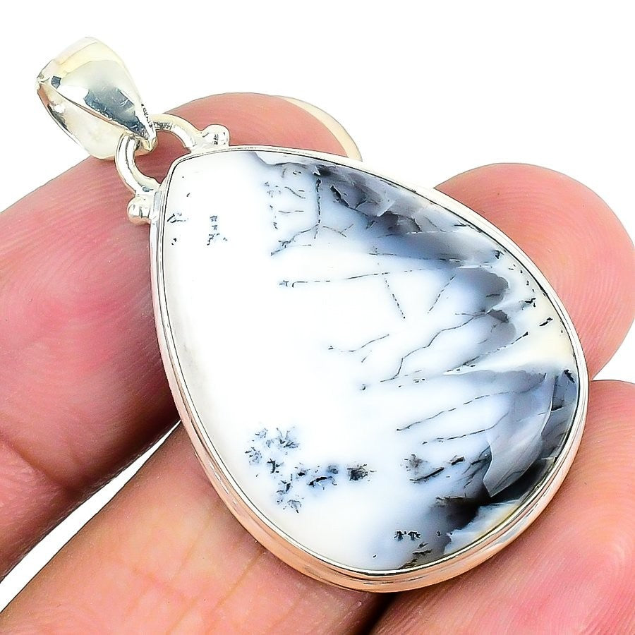 Natural Dendrite Opal 925 Solid Silver Daughter Bezel Engagement Trendy Pendant
