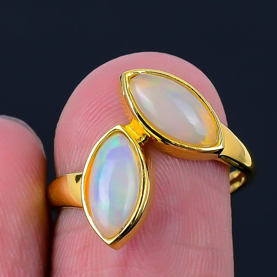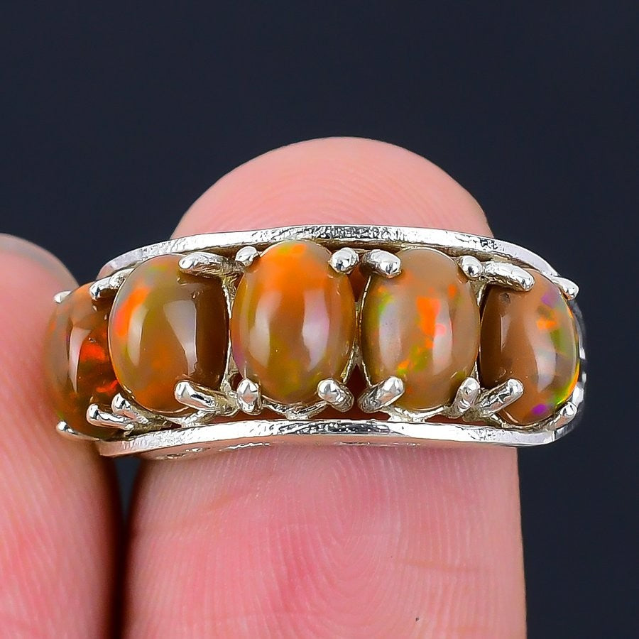 Ethiopian Opal Gemstone 925 Silver Engagement Boho Statement Ring Jewelry Size 6