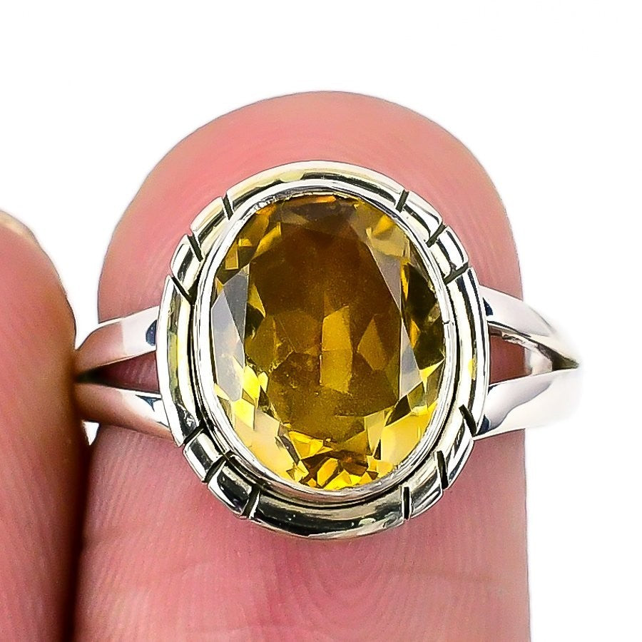 Citrine Gemstone Elegant Statement Birthday Wife Ethnic Ring 925 Sterling Silver