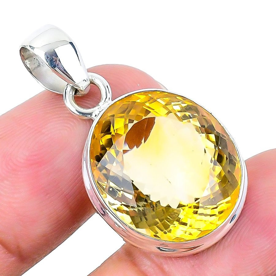 November Citrine Stone Ethnic Anniversary Engagement Handmade Pendant 925 Silver