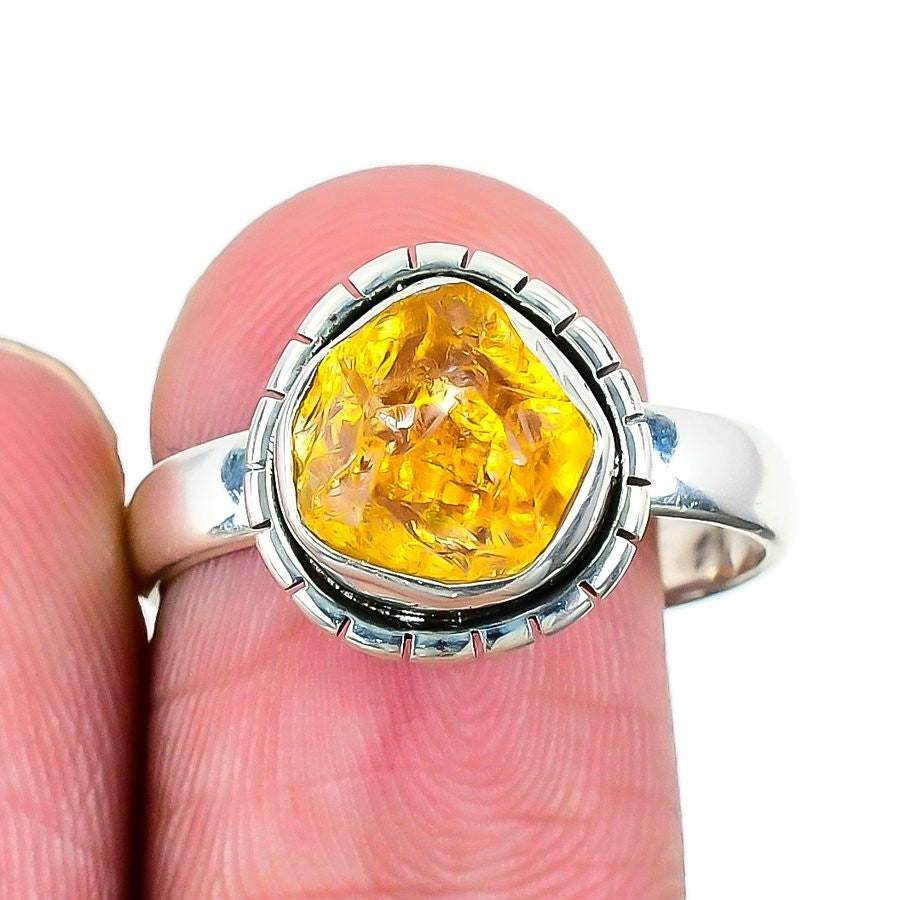 Natural Citrine Rough Solid Silver Statement Daughter Gift Ring Jewelry Size 9.5
