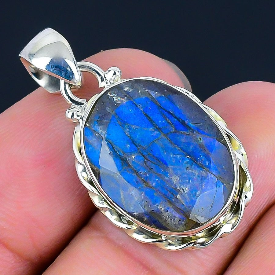 Natural Labradorite Solid Sterling Silver Wife Bezel Anniversary Pendant Jewelry