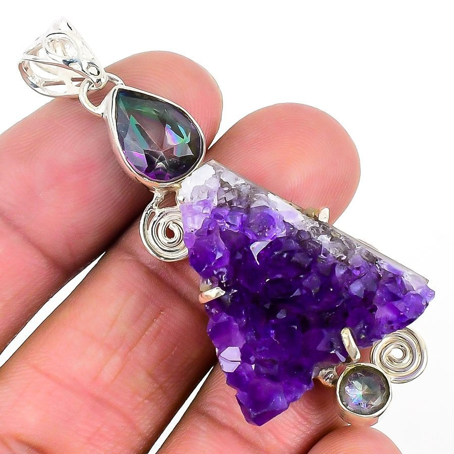 Amethyst Druzy Gemstone 925 Solid Silver Wife Ethnic Elegant New Pendant Jewelry