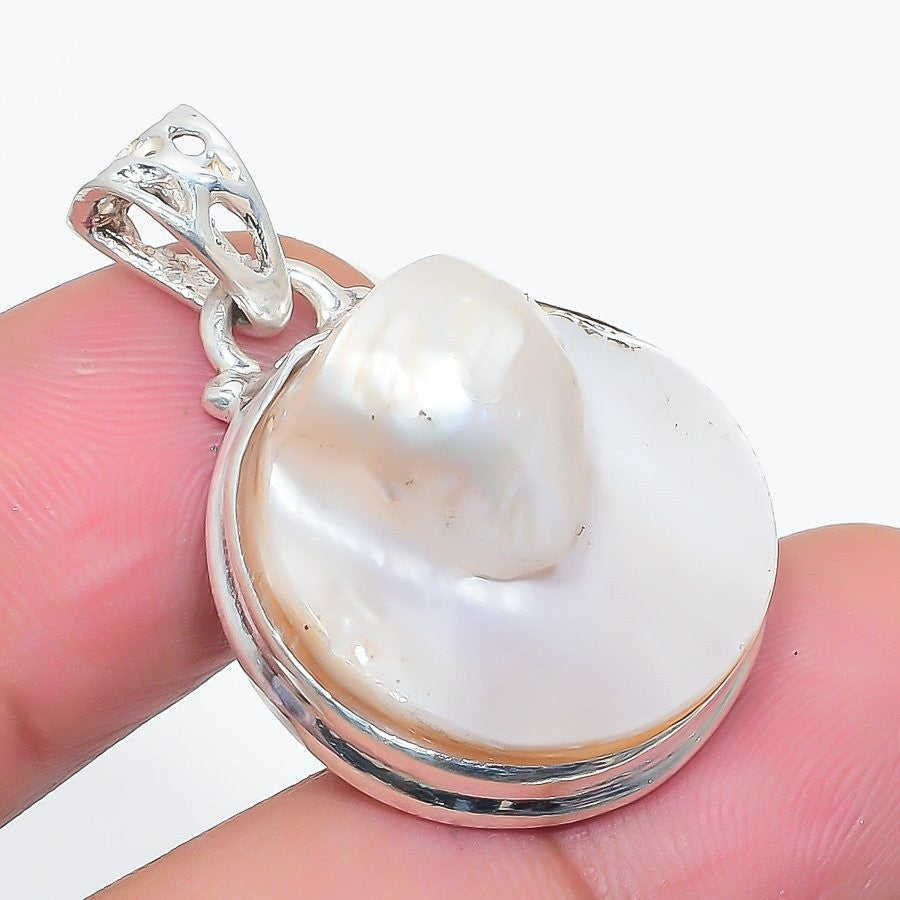 Blister Pearl Gemstone Solid Silver Mother Art Deco Daughter Gift Ethnic Pendant