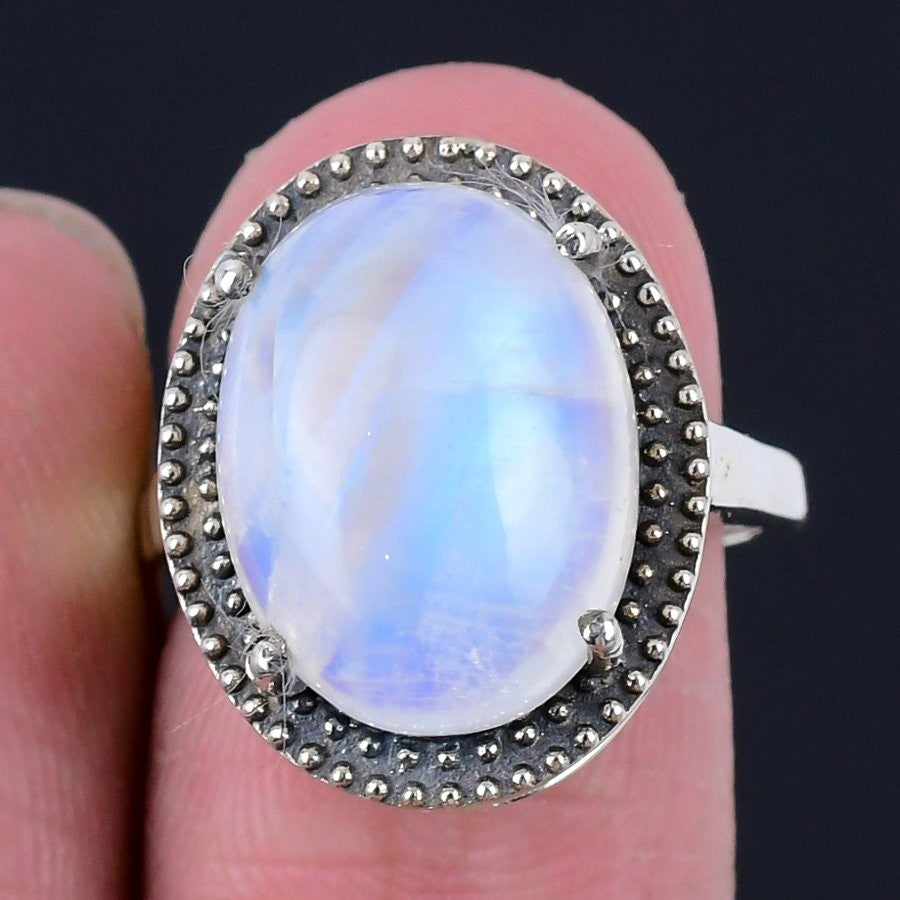 Daughters Day Deal Natural Rainbow Moonstone 925 Silver Cluster Boho Ring Size 7