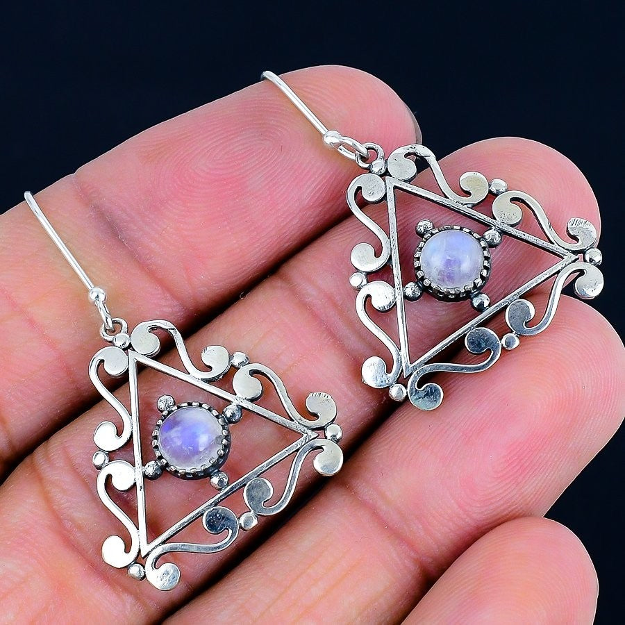 Moonstone Stone Solid Silver Hook Dangle Drop Crown Chakra New Earrings Jewelry