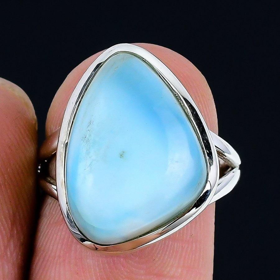 Natural Republic Larimar Solid Silver Statement Wife Wedding Ring Jewelry Size 7