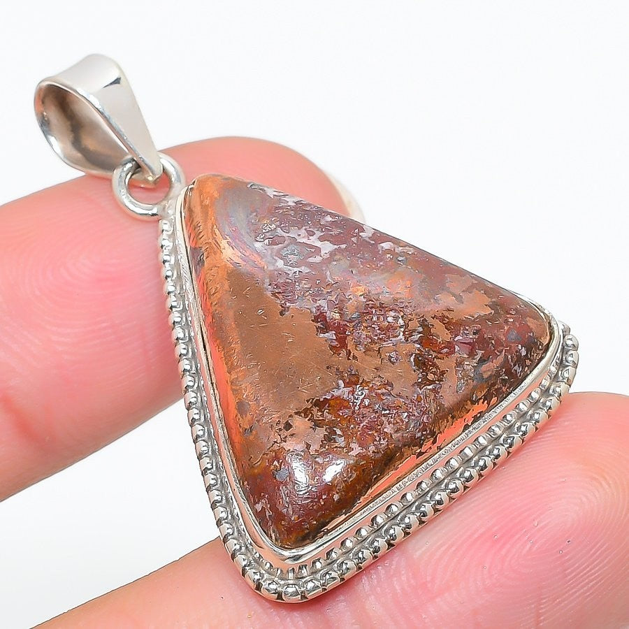 Bronzite Stone Solid Sterling Silver Art Deco Mother Handcrafted Pendant Jewelry