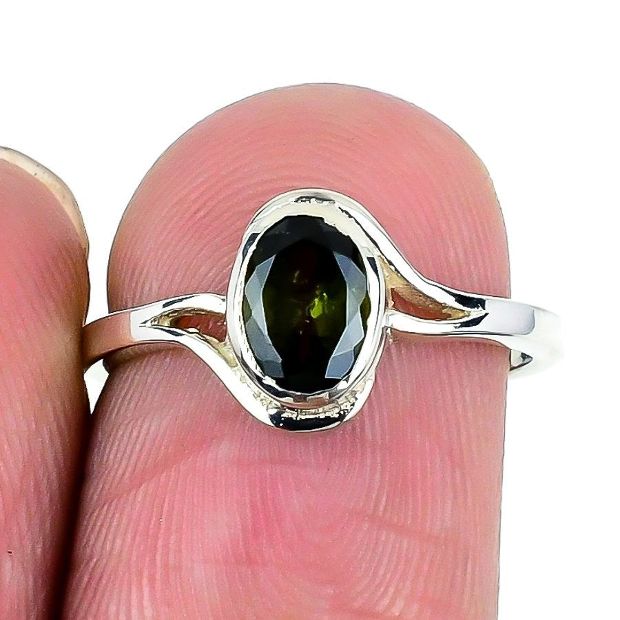 Green Tourmaline Gemstone Solid Silver New Statement Daughter Gift Ring Size 7