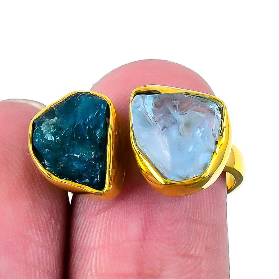 Natural Blue Kyanite Solid Sterling Silver Statement Sister Ring Jewelry US 8.5