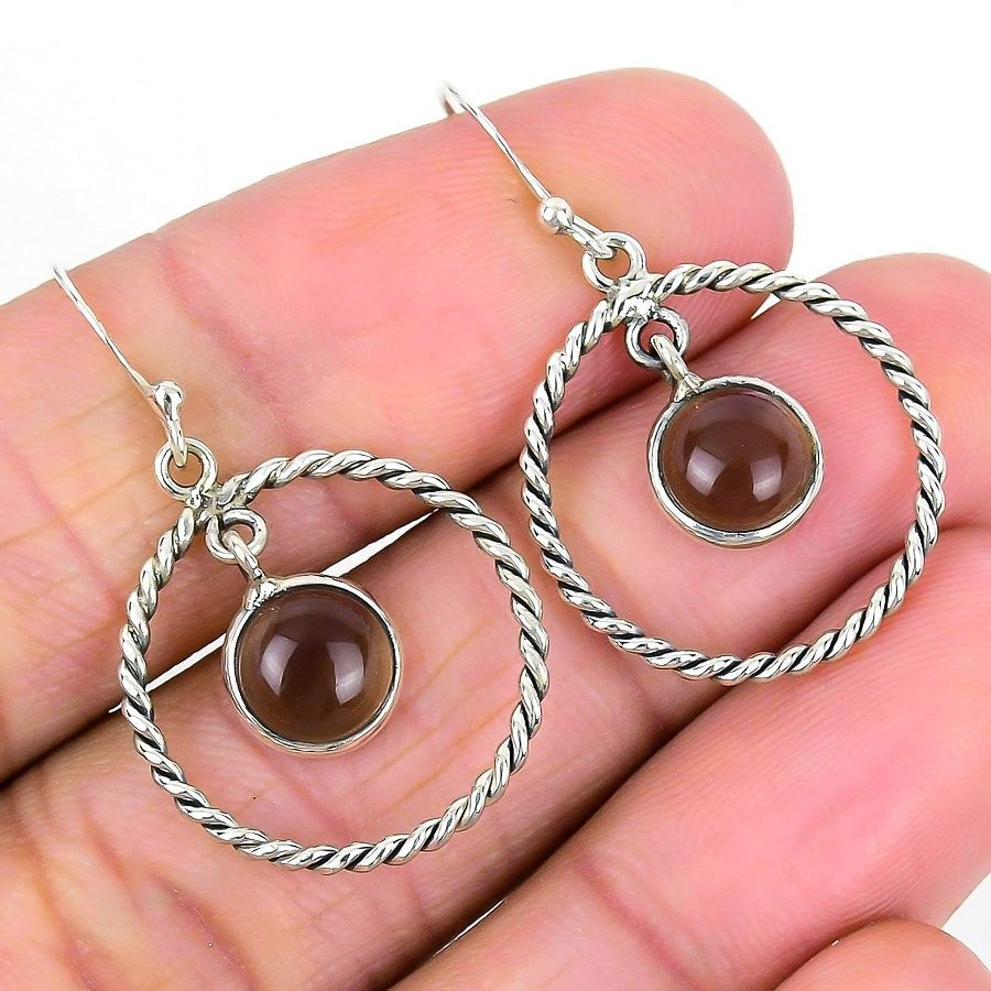 Smoky Quartz Stone 925 Sterling Silver Dangle Daughter Gift New Earrings Jewelry