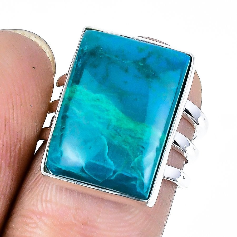 Natural Crysocolla Solid Silver Birthday Engagement Mother Statement Ring Size 7