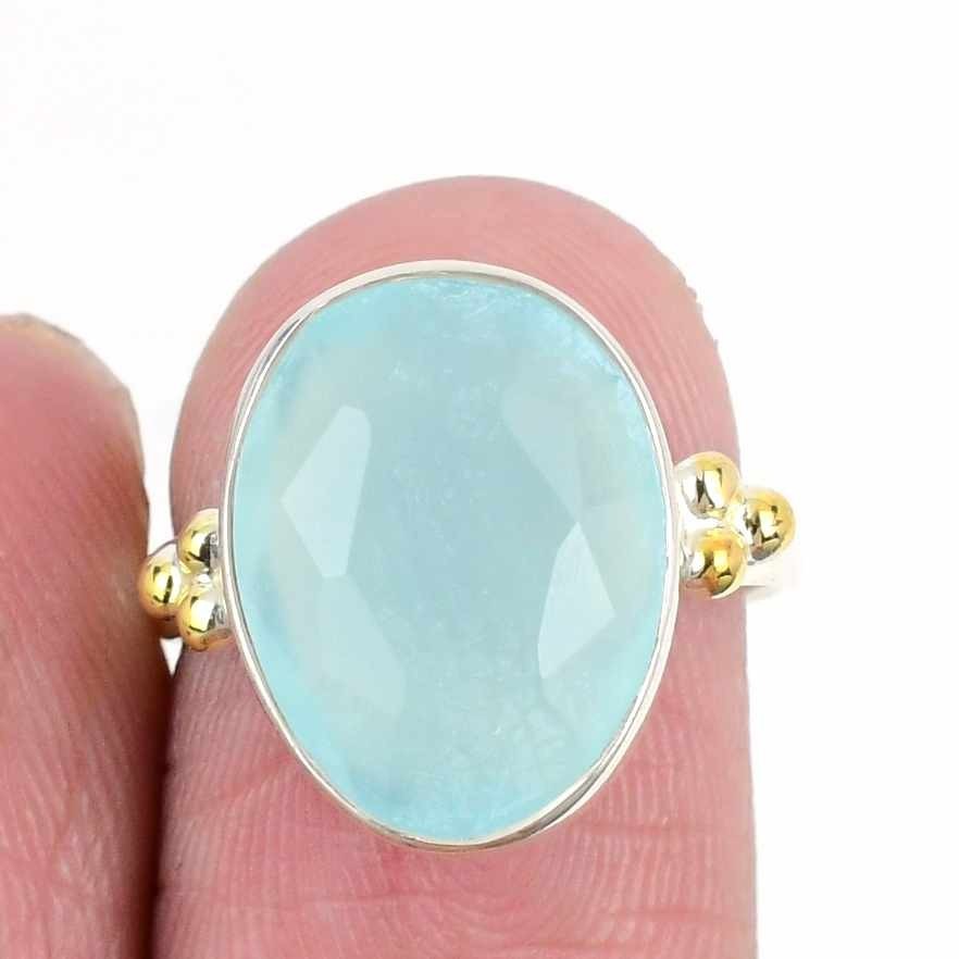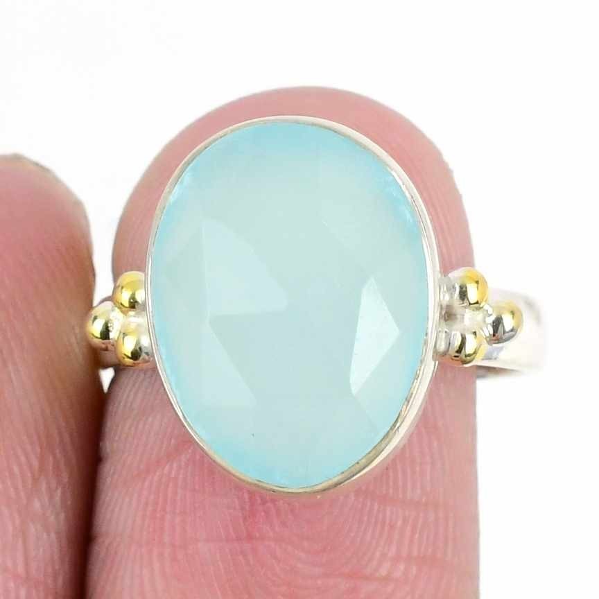 Aqua Chalcedony Gemstone Sterling Silver Wife Boho Cluster Ring Jewelry Size 6.5