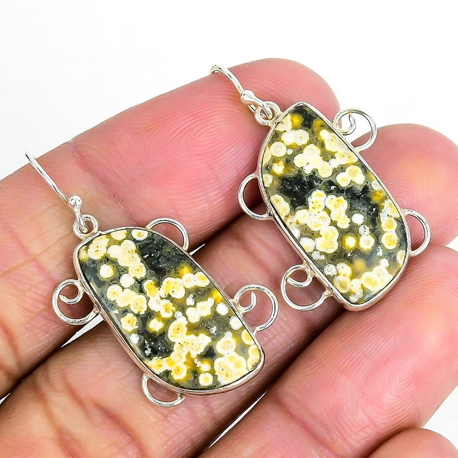 Ocean Jasper Stone Sterling Silver Channel Set Wedding Drop Dangle Wife Earrings