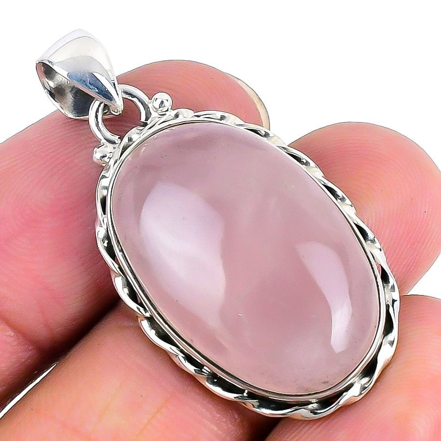 Daughters Day Deal Natural Rose Quartz Solid Silver Sister New Pendant Jewelry