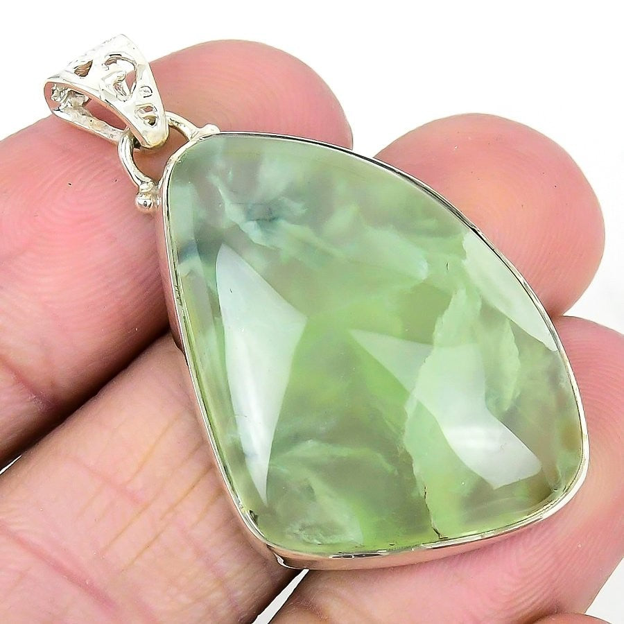 Prehnite Stone Birthday Anniversary Channel Set Pendant Solid Sterling Silver